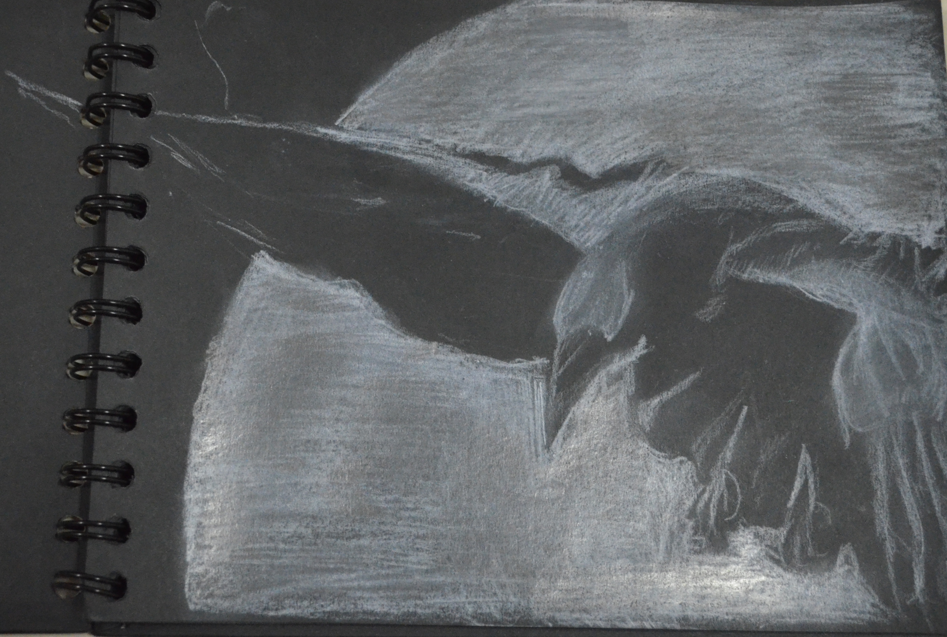 This was a quick sketch to christen my new black pad.The raven is my favourite animal and I wanted to know how it would look drawn on black paper with a Derwent Chinese White colour pencil. I completed the sketch in about 40 minutes (with distractions) and I would have rather have drawn this without the moon but without it it wasn’t recognisable as a and kind of bird. I have a feeling that this pad will be filled with crows by the time I’m finished.