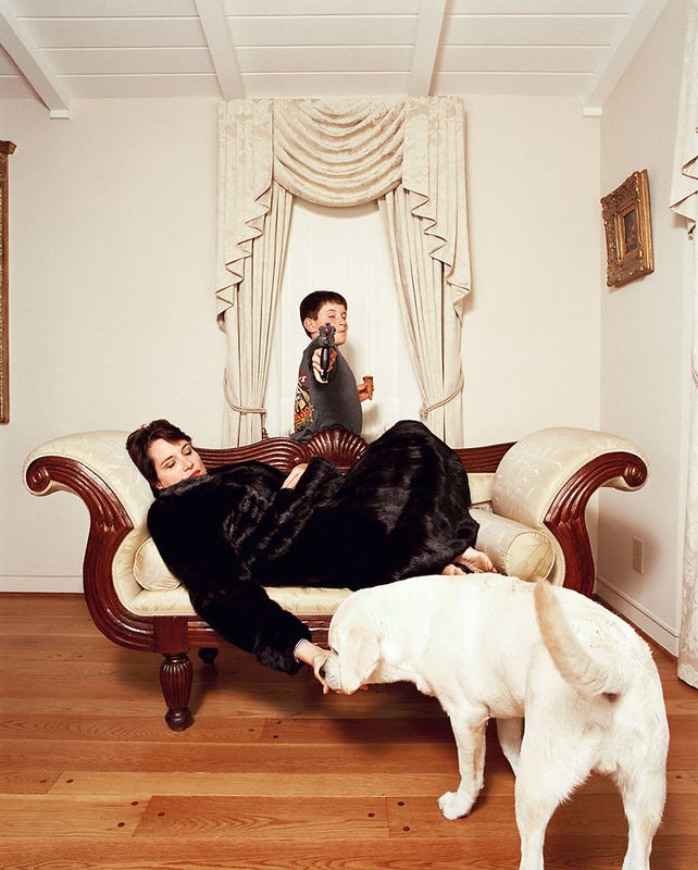 At first glance I thought the boy behind her was a poster or painting set behind a curtain of a cartoon figure ready to shoot but then I read the caption underneath.