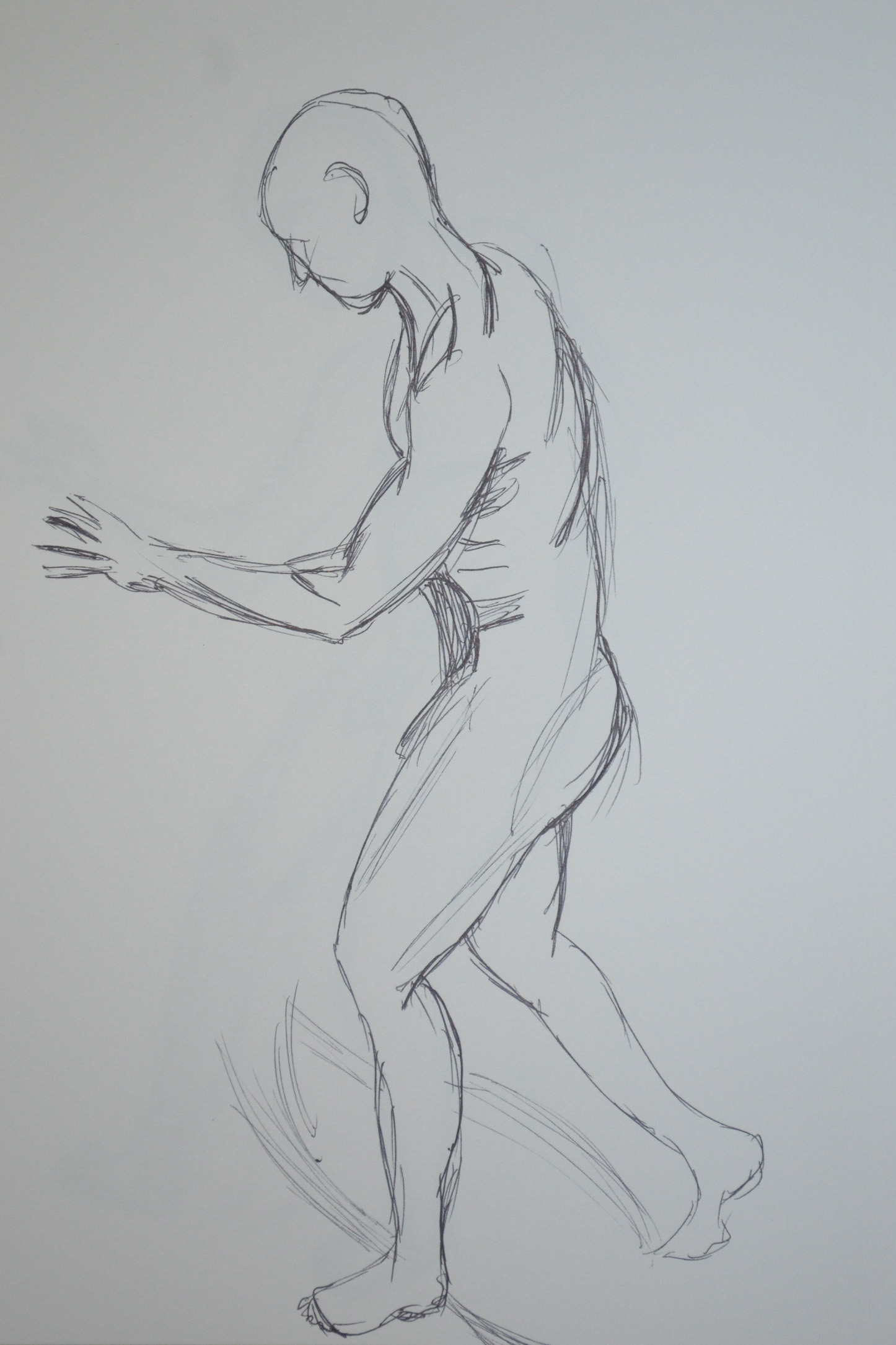 At the end of our second session I got the girlfriend to take some shots of me in various poses, the following sketches drawn in ballpoint pen was the result. A quick sketch, full of energy and reminding me somewhat of a Scheile painting.