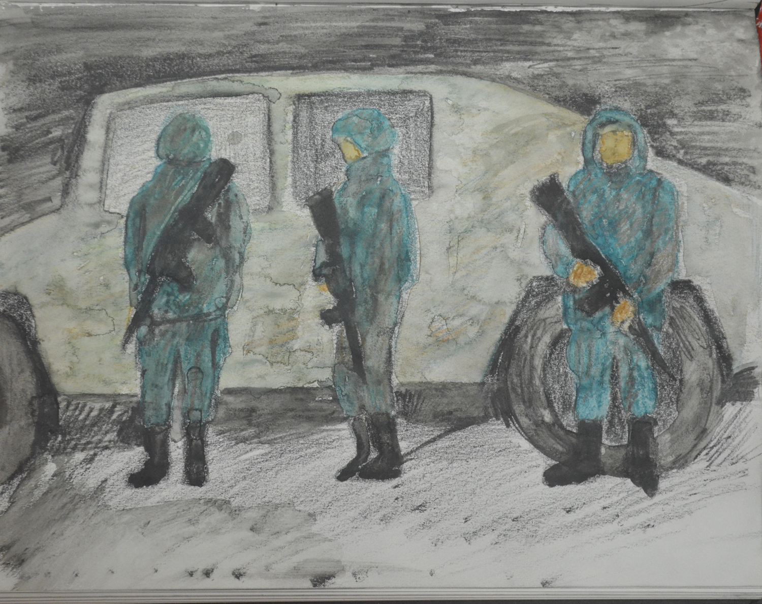 For me, I think the best drawing for the Fleeting Moment exercise was the watercolour pencil sketch of the soldiers as it was very smudged which helped me to create a blurred image.