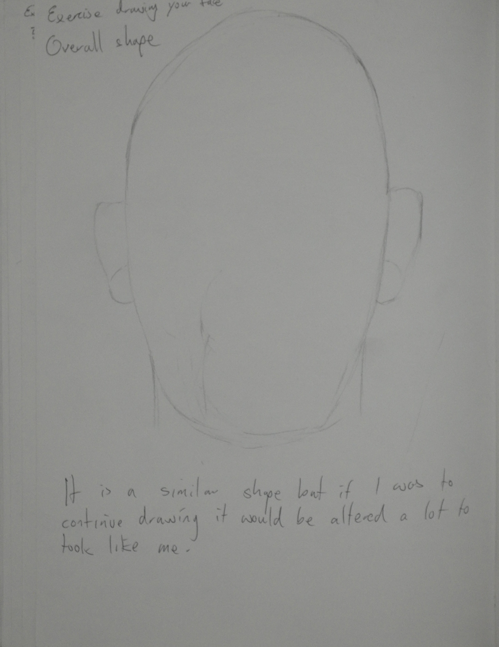 Eventually I drew something closer to the shape of my head and then drew in the ears and chin and then the neck and continued to correct the shape of the neck until it was spot on.