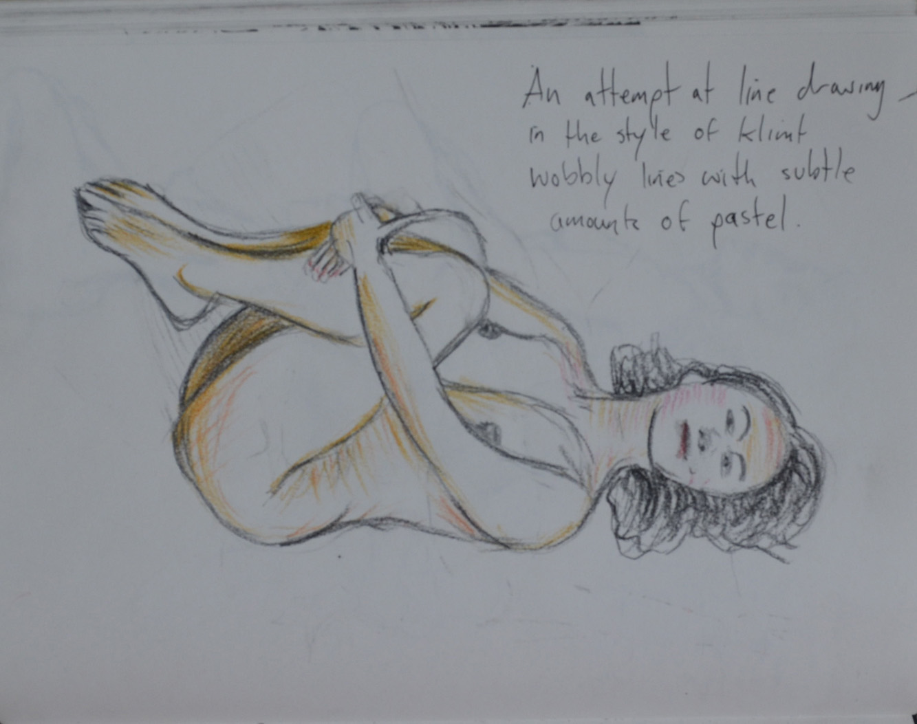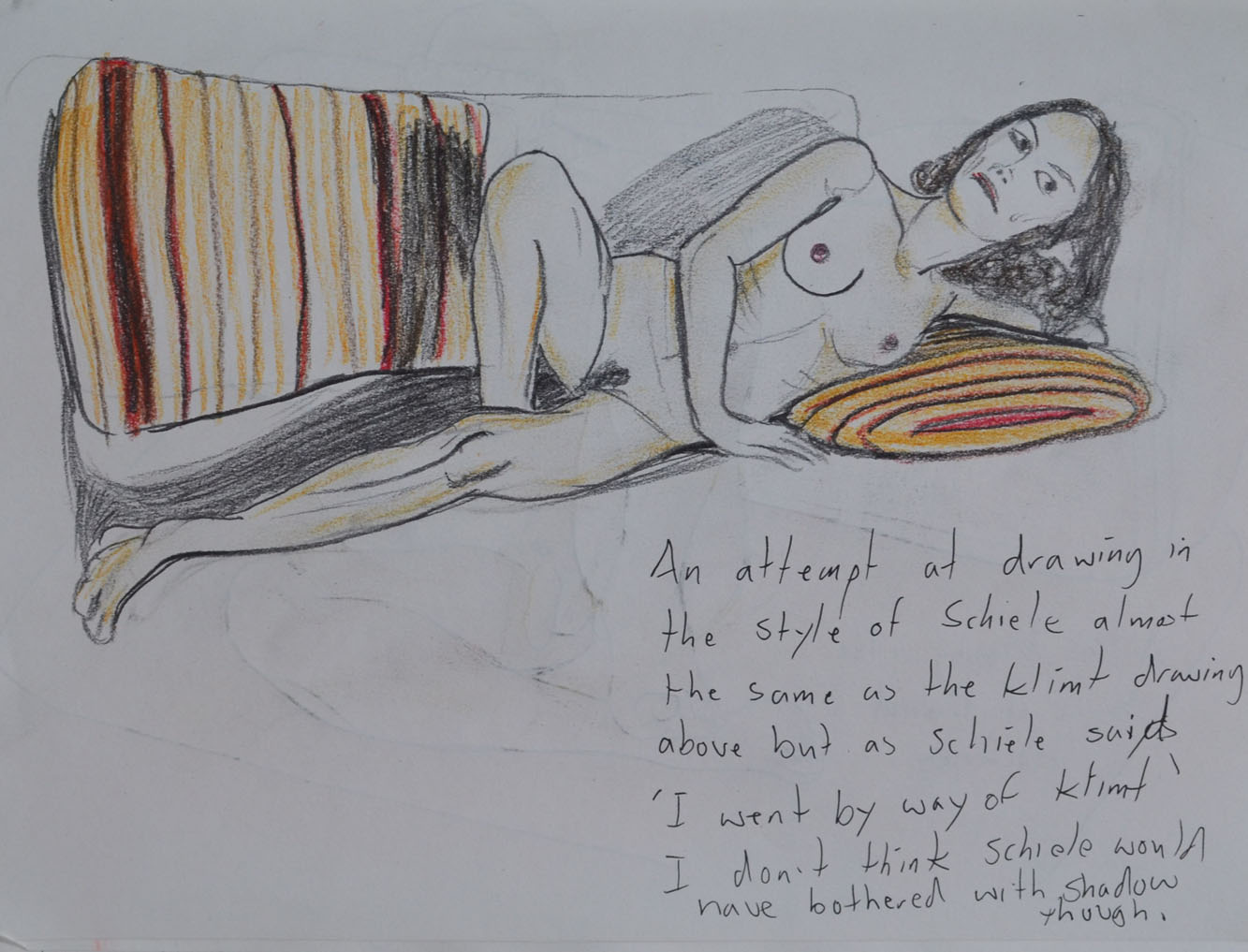 The second artist I decided to try and draw in the style of was Egon Schiele, I tried to imitate the jaggered lines of Schiele but I just didn’t get them quite right. it was hard to try and imitate Schiele when my model was a different build to the ones he drew. I’m not sure whether these first two drawings could pass for erotic art either.
