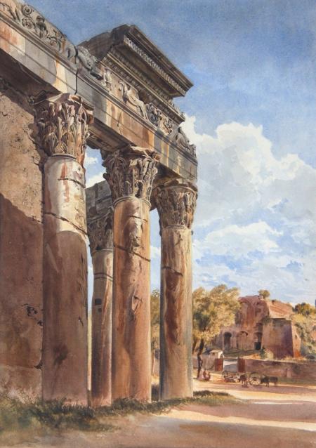 After completing the figure with watercolour pencil and wet brush I painted the shadows on the floor with watercolour paint using a brush and then dragged the paint off with the paper with a tissue, I’m not sure if there’s a special name for that technique. I painted the rest of the floor and the walls with a brush but I needed to show the light reflecting off both and so when the watercolour paint was dry I stippled the gouache paint over the top with the same brush. From there I finished the door off hatching with watercolour pencils then going over them with a wet brush.