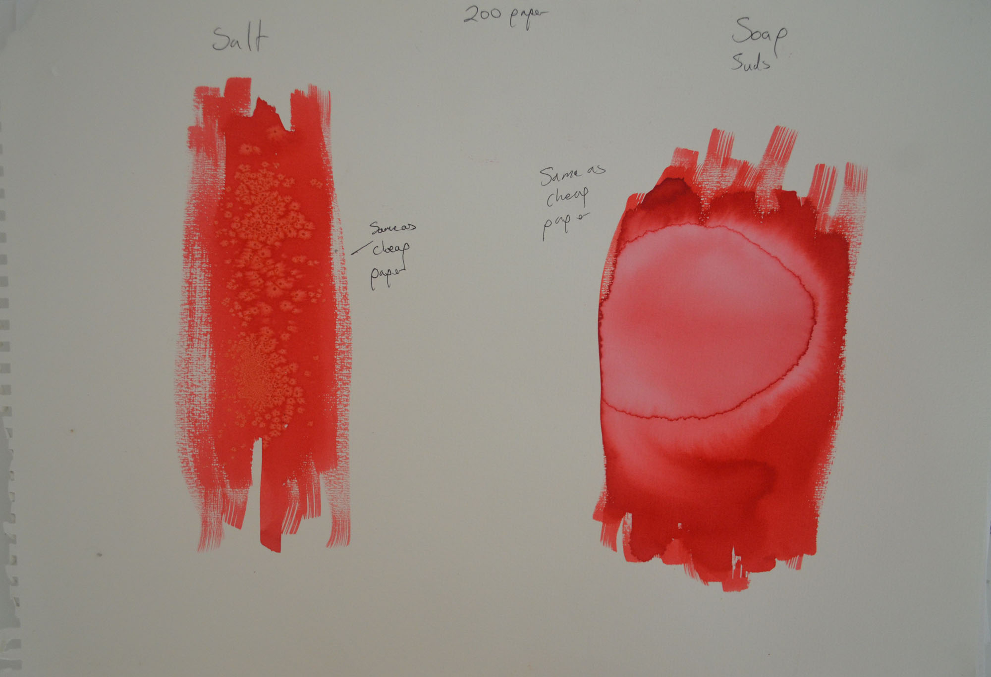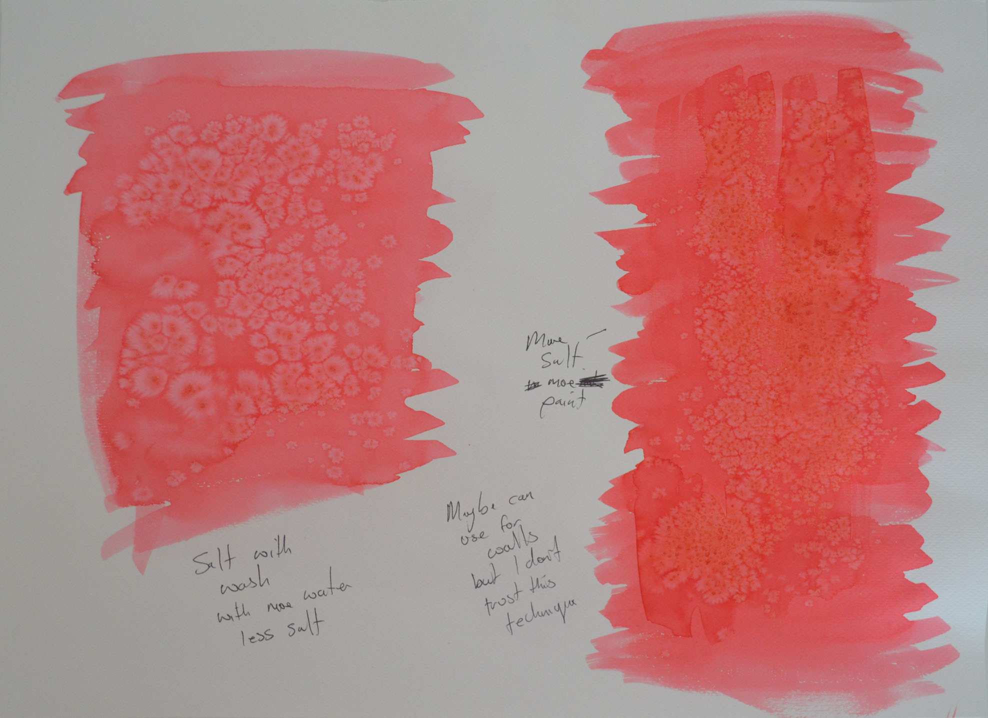 I decided to water the wash down some more and start again. this time I sed less salt and as you can see above the results are a bit better. However I wasn’t sure how I would use this technique in the finished piece.