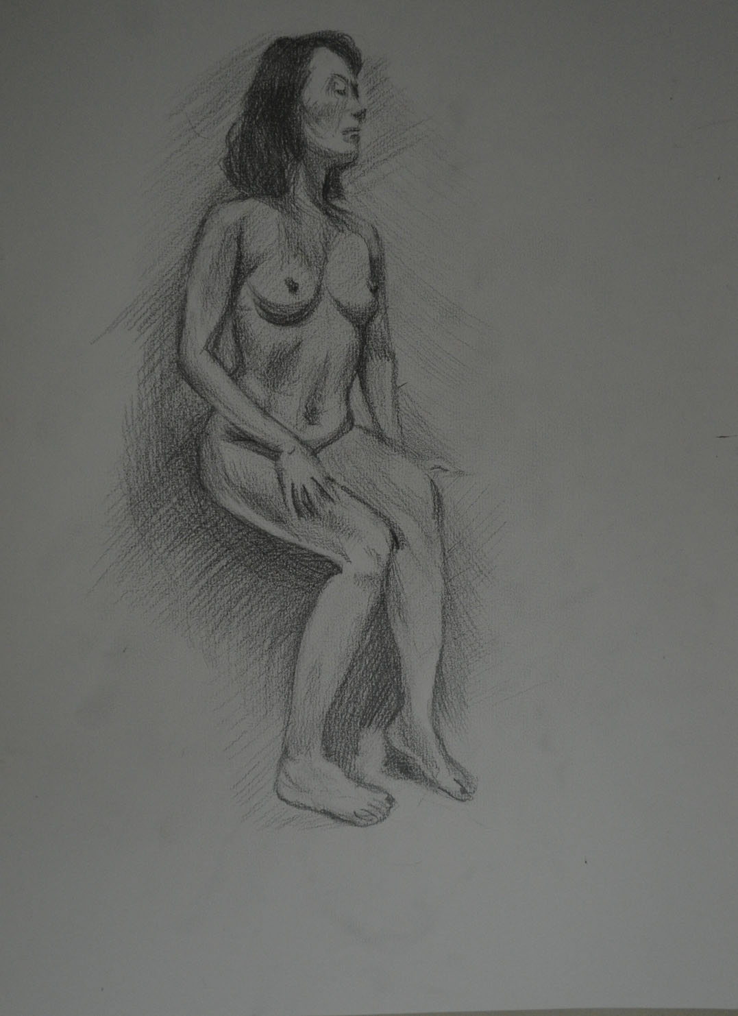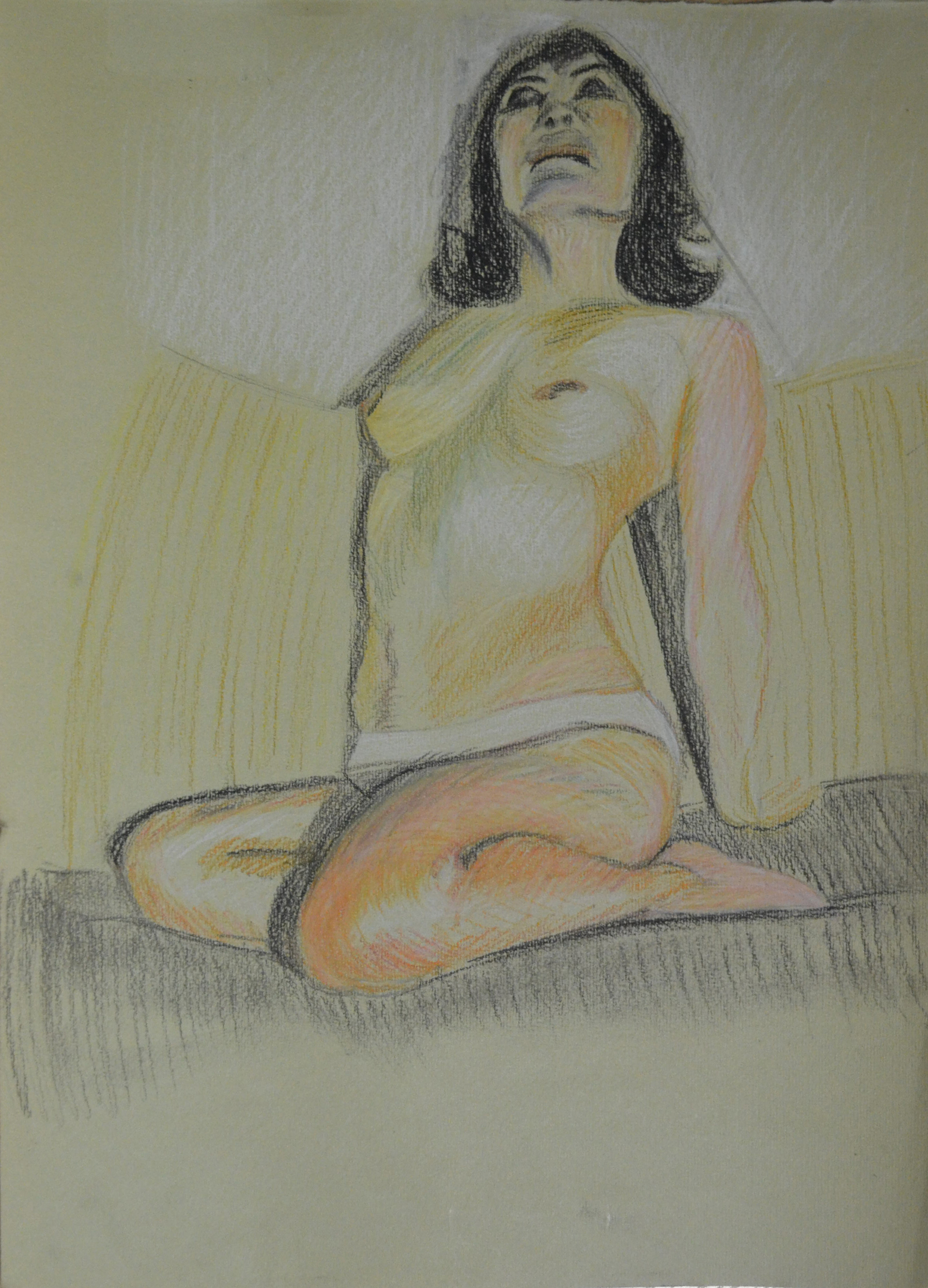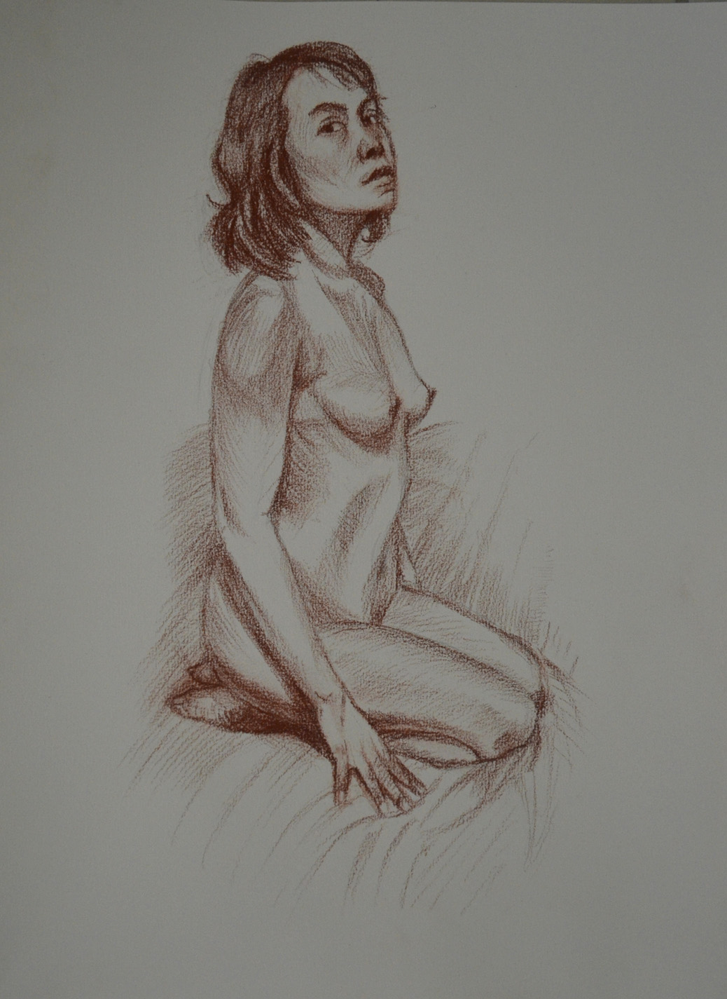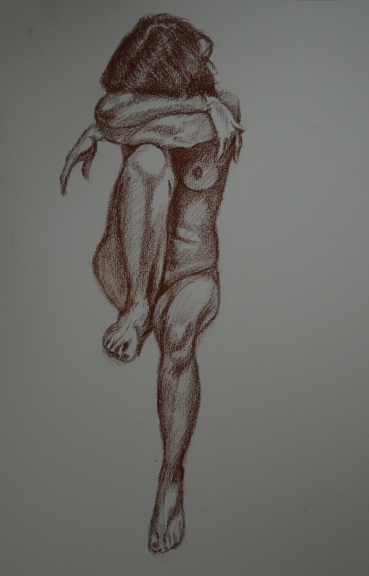 Both of these drawings worked out great, the first drawing looks like the the model is absorbing sunlight, while the second, even though it was a very similar pose with similar colours, albeit a tan instead of yellow looked very different indeed. This time the subject looked like a tanned figure and to add to it I drew a breath cloud. Thinking about it now they could actually look like before and after figures, tanning and burnt.