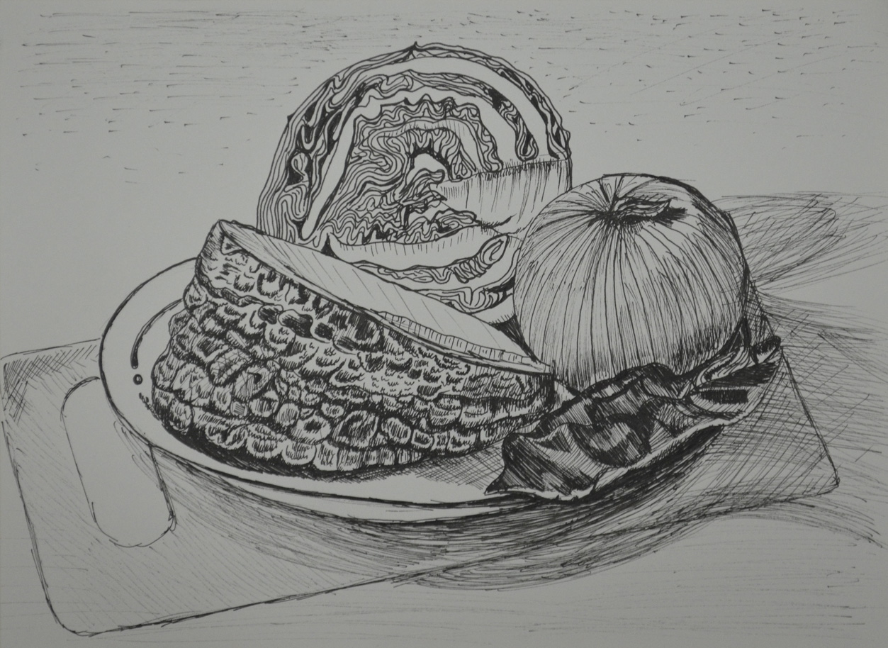 The finished drawing is not brilliant but for the time I spent on it I’m quite happy with the results. The only part of this picture I am not happy with is that I rushed the completion of the violet coloured cloth that I used for a background.