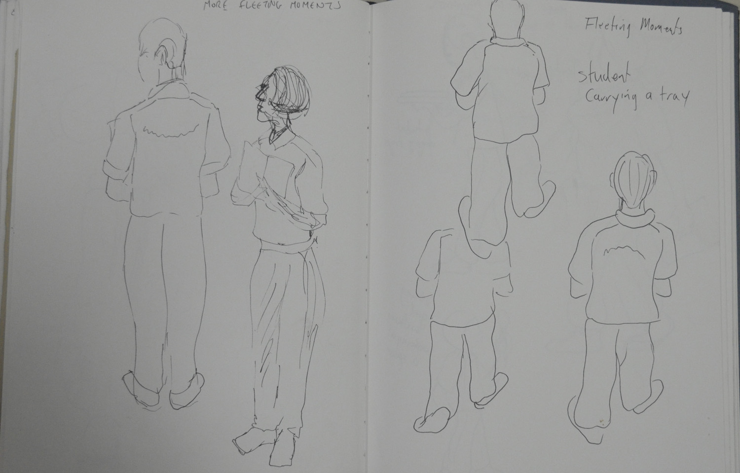 I decided to start by having a go at sketching all three, starting with the view from the second floor window, which even on the small preliminary (rough) sketch in my notebook proved very technical.