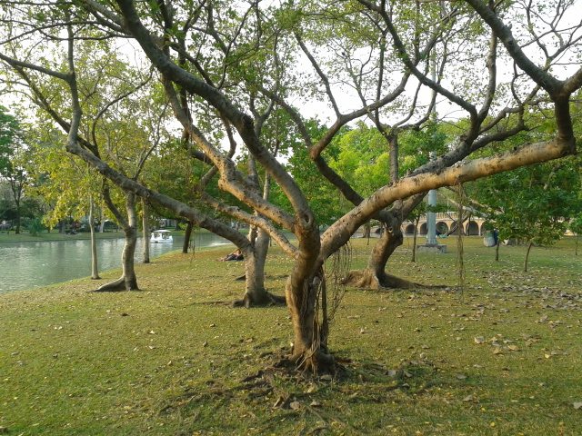 For this exercise I headed out to Suan Rot Fai Park again, railway park, where I did most of my work for Landscape Drawing. There was a eucalyptus tree there that really interested me due to it’s amazing rainbow colours. However, on the way there the traffic was so bad due to yellow shirt roadblocks in that area that we jumped out of the tuk tuk and decided to walk the rest of the way which was about a kilometre. To get to Suan Rot Fai we had to walk through another park, Chatuchak park which is just past the famous JJ weekend market and that was when the magic happened.